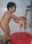 In This work we see a set of self portraits. The projector project a slideshow on the white image.